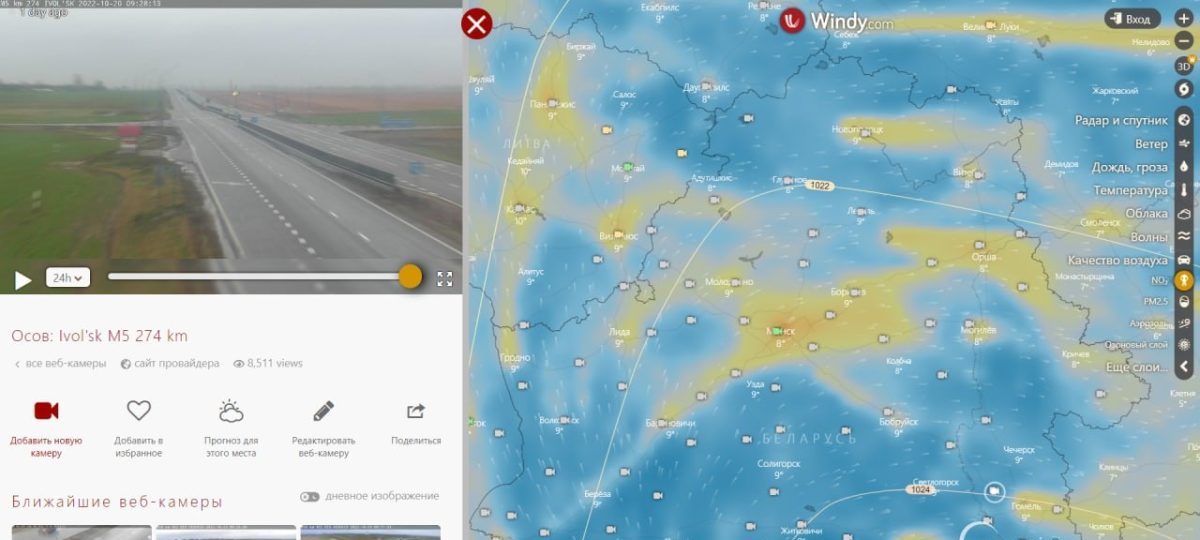 У Беларусі ўжо некалькі гадоў недаступны сэрвіс, які дазваляў у рэжыме рэальнага часу адсочваць стан дарог з дапамогай сотняў камер відэаназірання. Раней кіроўцы маглі скарыстацца сайтам i.centr.by, дзе трансляваўся від з камер Белдарцэнтра, і самастойна ацаніць умовы руху — асабліва ў складаных метэаўмовах.