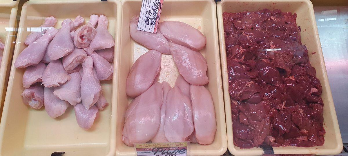 На брестской «колхозке» заметно снизилась стоимость курицы, ее разделки и субпродуктов. Так, днем среды 27 мая тушки цыплят-бройлеров продавали по 3,80 — 3,90 рублей за килограмм. Месяц назад цены на нее начинались от 4,20 рублей за килограмм.
