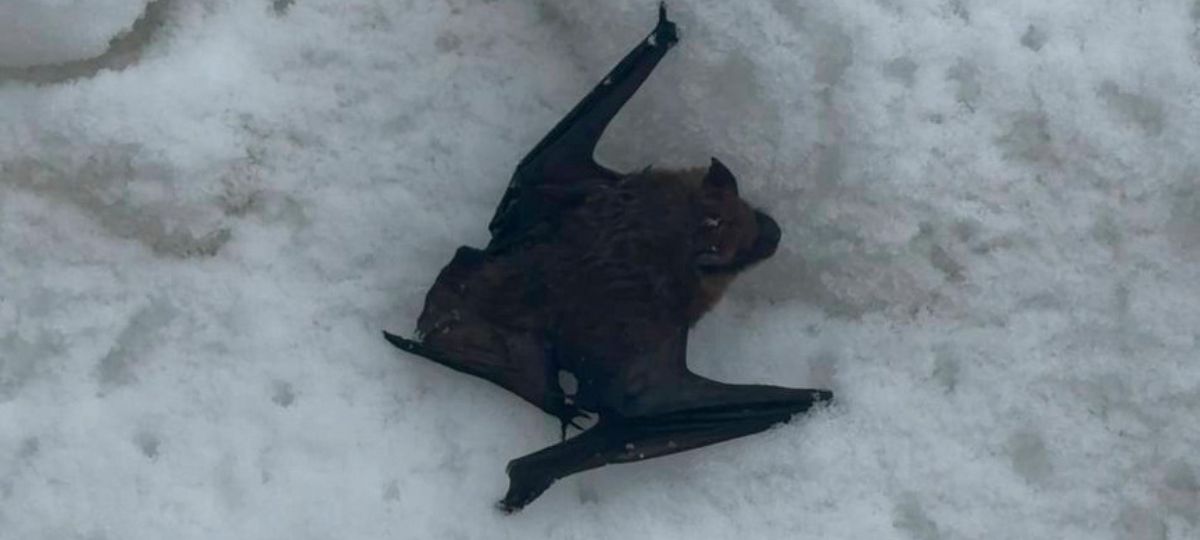 Летучая мышь на снегу