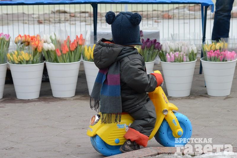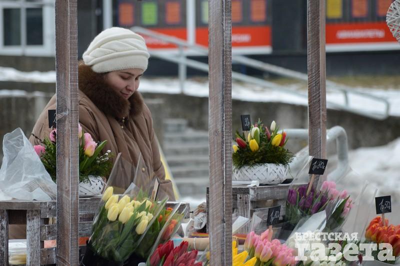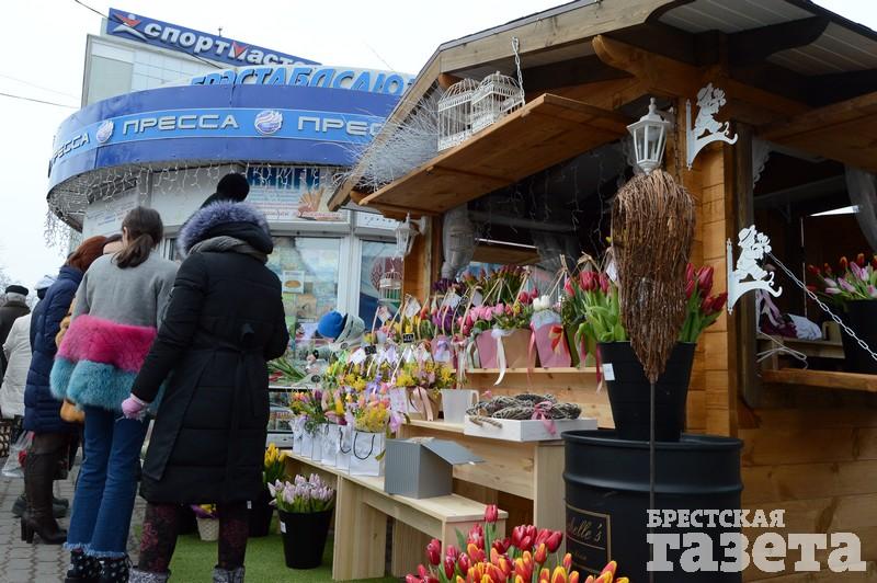 Первые торговые точки с тюльпанами и мимозой стали появляться еще в понедельник 5 марта. На следующий день цветочников стало заметно больше. В центре города большие цветочные ярмарки развернулись возле ЦУМа и рынка «Центральный». Несколько тюльпанных торговцев разделили на зоны своего коммерческого интереса всю протяженность брестского Арбата.