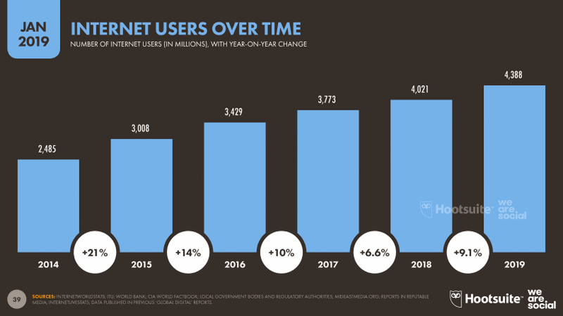 В тройку лидеров по темпам роста числа интернет-пользователей вошли Индия (+97 миллионов, или 21%), Китай (+50 млн, +6,7%) и США (+25 миллионов, +8,8%).
