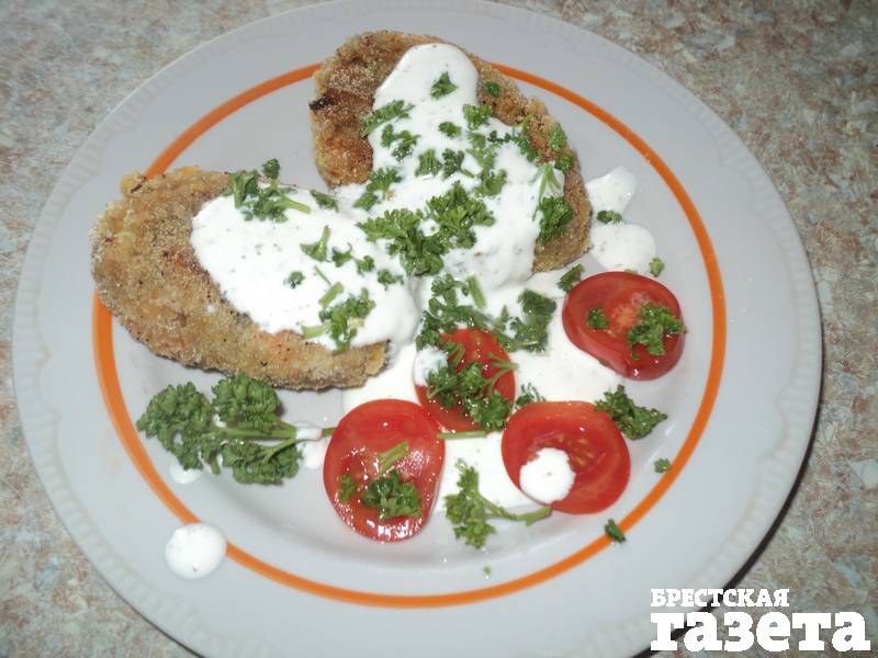 Мне больше всего понравилось это блюдо со сметанно-лимонным соусом. Я просто смешала сметану, лимонный сок, соль и пряные травы по вкусу.