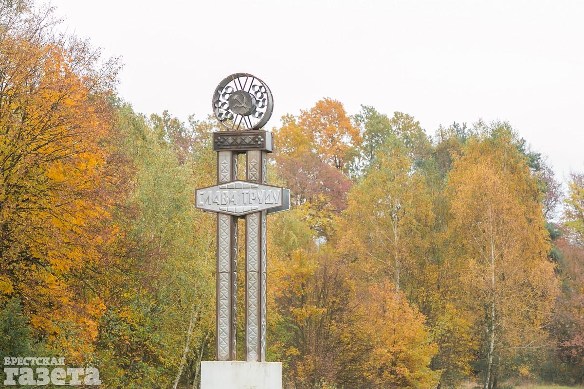Дорога заняла около получаса, который мы потратили не зря. Природа Беларуси в конце октября радует яркими красками. Над спящими полями парят неутомимые хищники: канюки, пустельги, ястребы. Необыкновенно хороши румяные дубки, янтарные клены и золотые березы. Неожиданными фейерверками вспыхивают среди почерневших огородов кусты алых и фиолетовых георгин, бордовых хризантем, оранжево-огненных бархатцев. Из-за поредевших ветвей можно рассмотреть работы деревенских столяров — резные наличники на окнах и причудливо-сказочные беседки для колодцев.