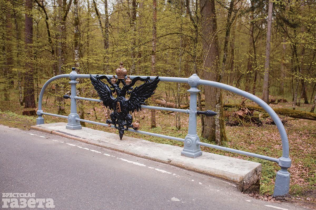 Совершенно неожиданно (ведь мы не первый раз колесим по пуще) на маршруте мы увидели интересный исторический объект: гербовых орлов на перилах моста. Оказывается, в национальном парке 10 подобных мостиков, которые относятся к бывшей царской дороге Пружаны-Бельск (Польша).