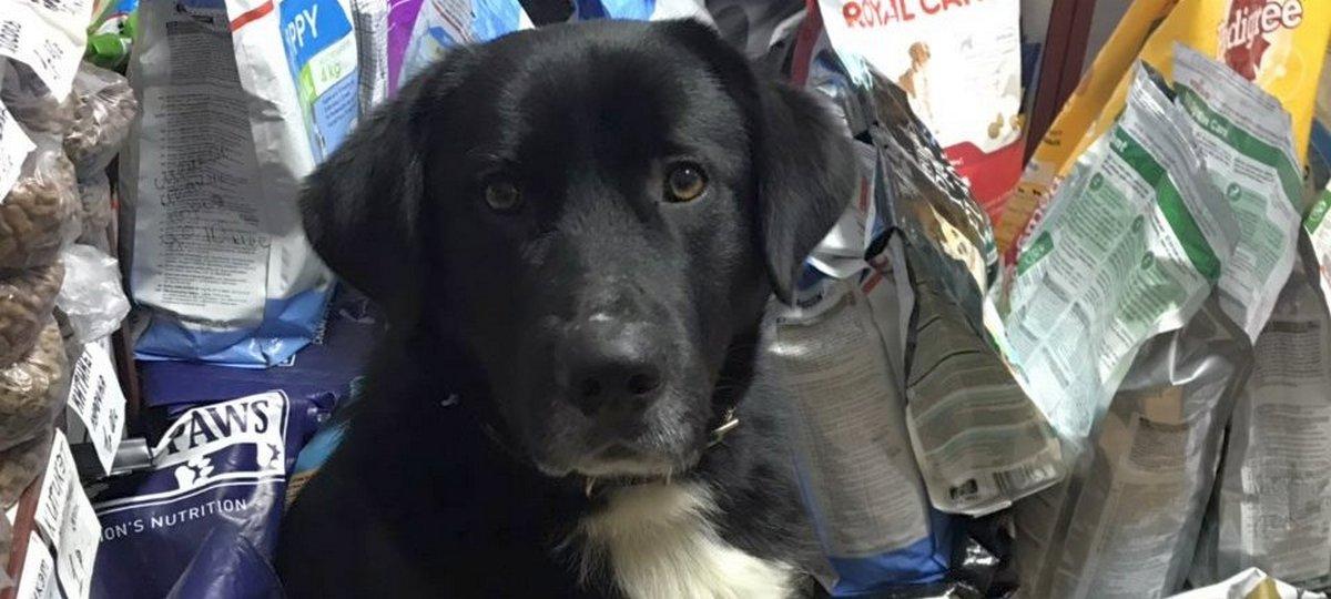К зоопавильону в брестском микрорайоне Граевка с июля прибился молодой пес, которого назвали Портосом. Практически целый день он или бегает на свежем воздухе или проводит в ларьке. Но когда торговая точка закрывается – собаку с сожалением зовут за дверь.