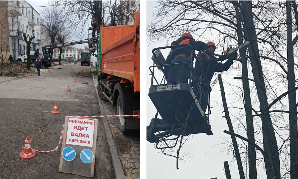 Санитарная обрезка дерева на улице Кирова в Бресте. Март 2024 года. Фото: телеграм-канал «Любимый Брест».