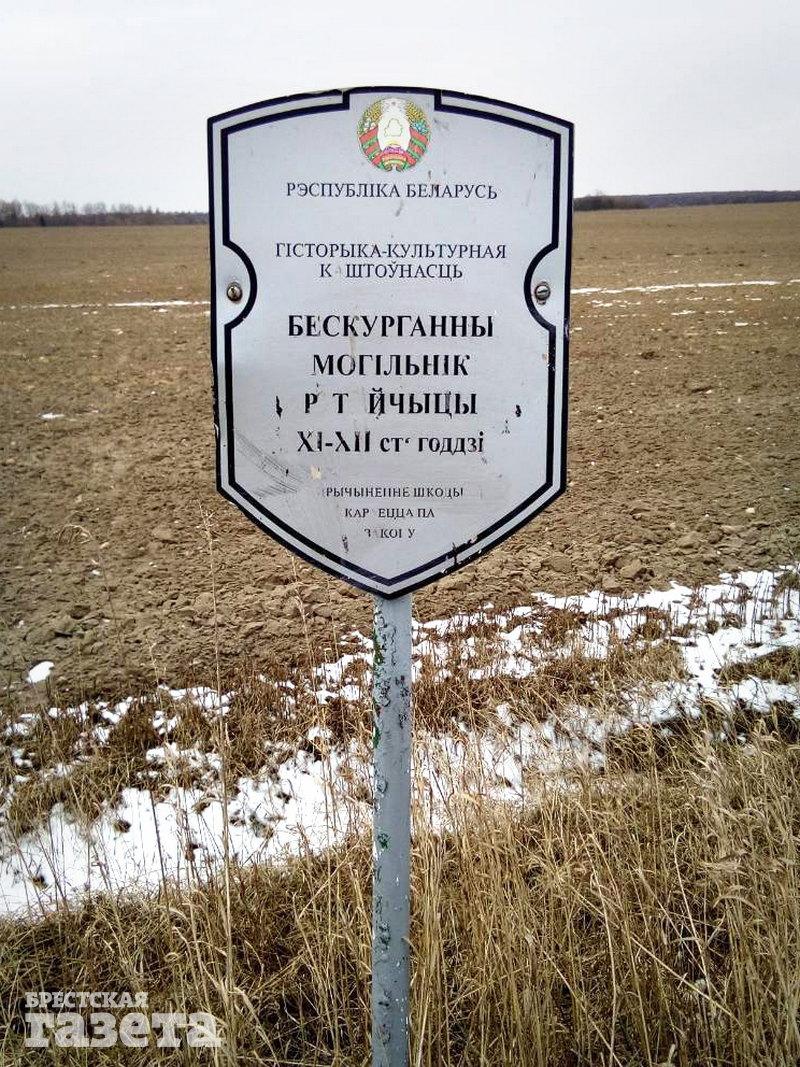«Плуги, судя по всему, приблизились очень близко, культурный слой поврежден, и все, что возможно, уже нарушили, — считает Чайчиц. — Обычно как минимум в радиусе 5 — 10 метров от такой таблички ничего нельзя делать. Получается, что в начале прошлого века люди, которые занимались земляными работами и обнаружили могильники, вызвали, кого положено. А вот другие сейчас ведут на месте могильников сельхозработы и засыпают их химикатами. По сути, все труды археологов сводятся на нет».