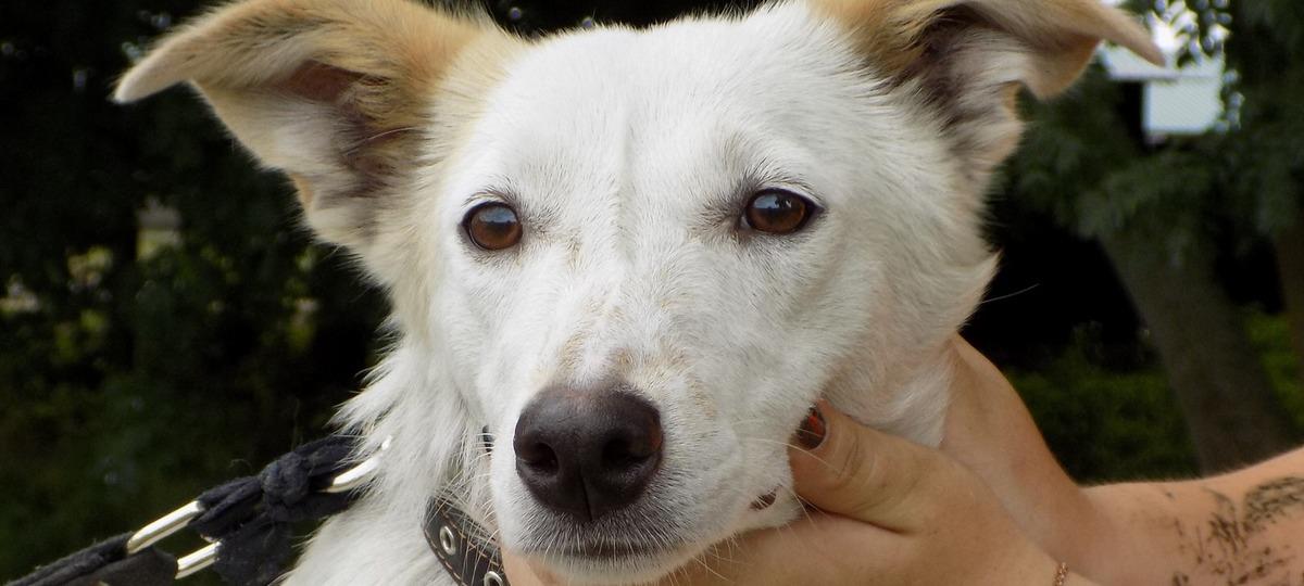 Лаки-Белянка молодая, здоровая, воспитанная. Среднего размера. Стерилизована. Настороженно относится к мужчинам.