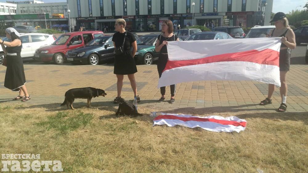 Около 15.00 в Бресте снова начала выстраиваться цепь солидарности. Люди собираются на проспекте Машерова возле ЦУМа. У них в руках, как и прежде, бело-красно-белые флаги, цветы и плакаты.